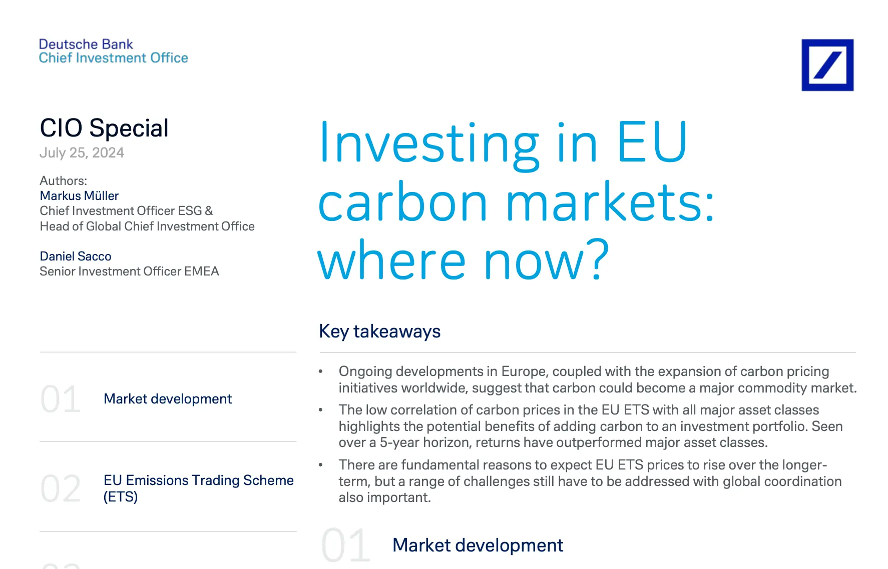Download het rapport “Investing in EU carbon markets: where now?” (Deutsche Bank CIO Special, juli 2024)